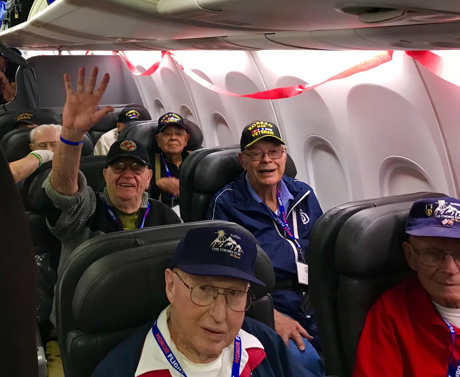 For some, Honor Flight was a reunion of buddies and friendships forged decades ago. These four Marines are part of the "Chosin Few", who were surrounded and vastly outnumbered for weeks in North Korea's mountainous Chosin Reservoir where they encountered brutal winter cold. Battle casualties on both sides were nearly equaled by those that succumbed to the harsh frozen conditions.